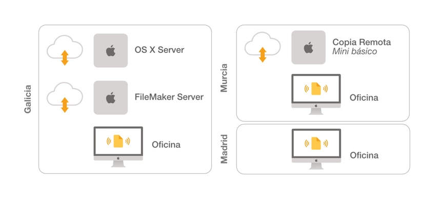 Cada uno con su propia conexión a Internet. El servidor de copias situado en una localización diferente.